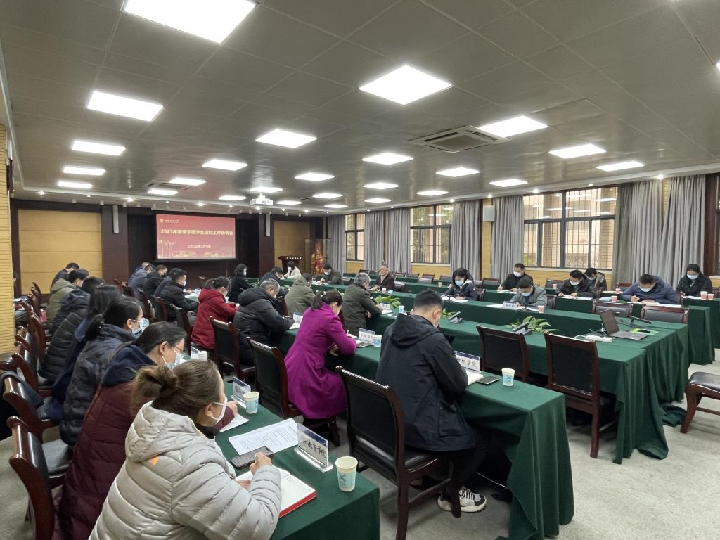 会上,学工部介绍了2023年春季学期学生报到时间、返校工作流程、重点工作及具体要求,各相关职能部门负责人就学生返校工作准备情况作具体介绍并进行讨论。