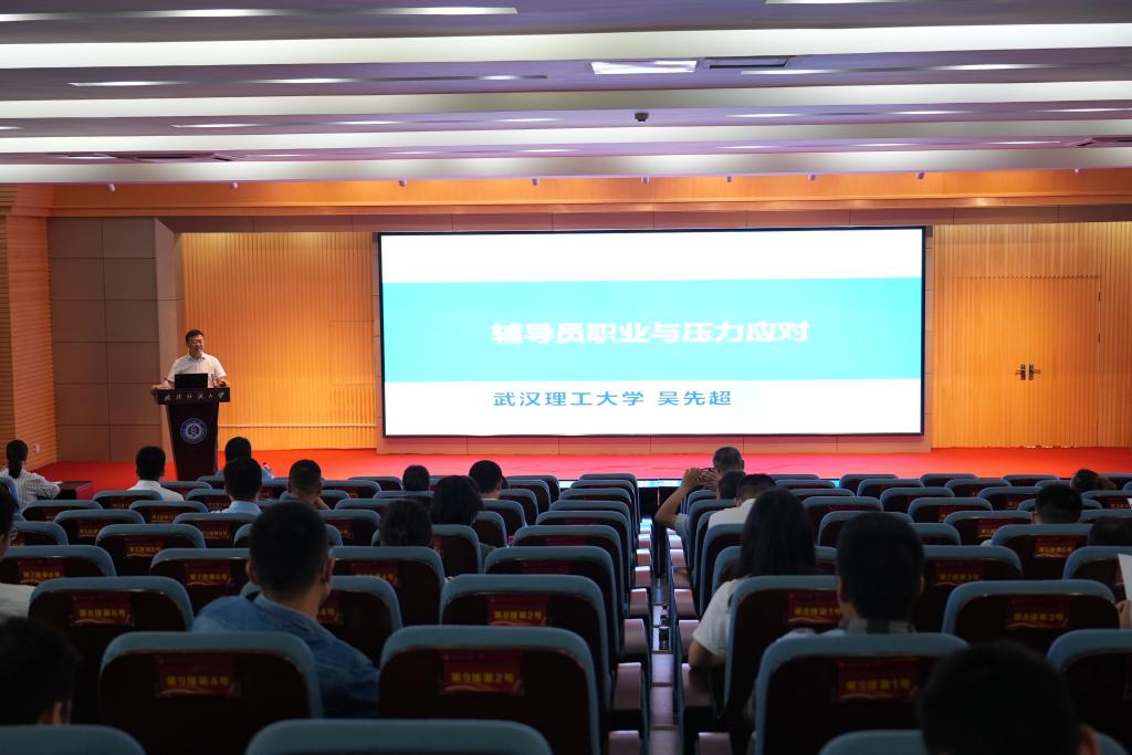 为深入学习贯彻习近平新时代中国特色社会主义思想,加强辅导员队伍建设,全面提升辅导员职业能力和综合素养,5月19日上午,湖北省高校心理健康专家委员会副主任兼秘书长、武汉理工大学新闻发言人兼党委宣传部副部长吴先超教授以《辅导员职业与压力应对》为主题,为辅导员“赋能计划”培训班开讲。