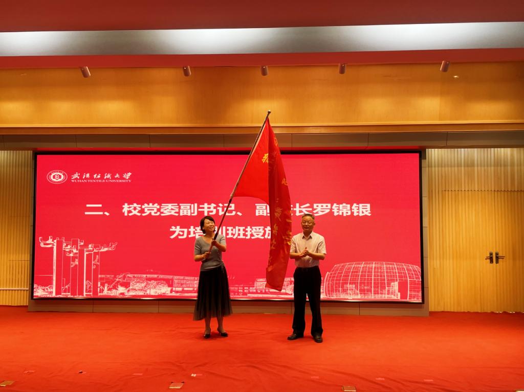 会上,罗锦银为培训班授旗,金艳向培训班学员代表赠送了学习资料,研工部报告了辅导员“赋能计划”培训班学习安排,学员代表王双喜做了表态发言。