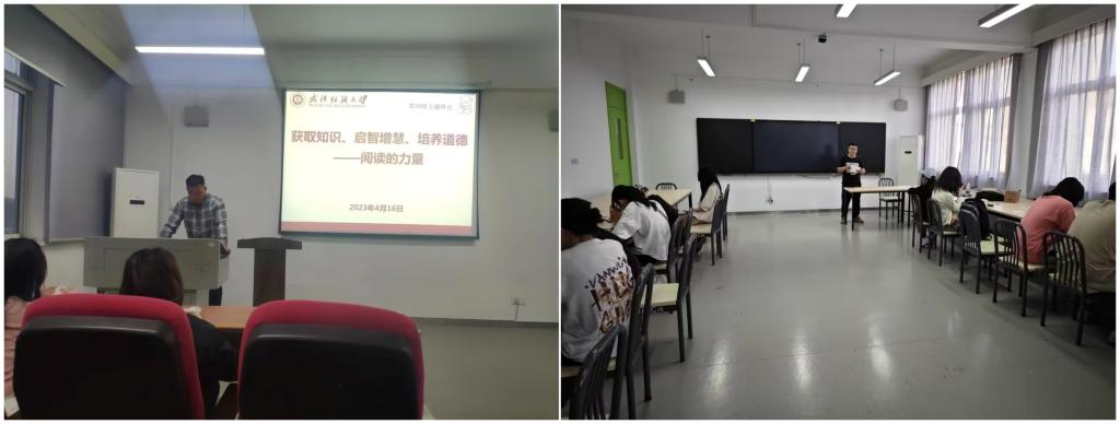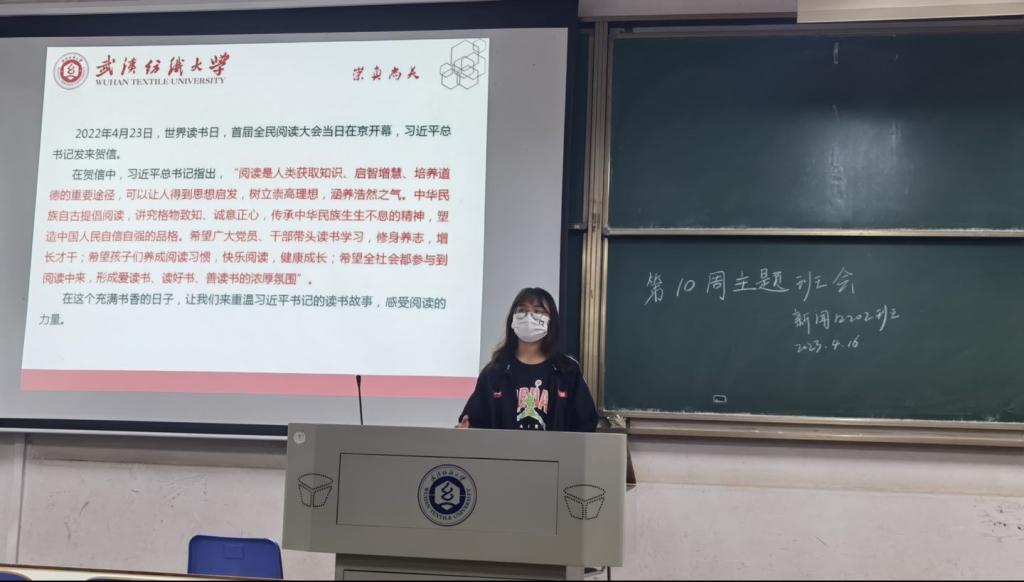 各年级辅导员及班主任围绕“世界读书日”这一主线,以习近平总书记在全民阅读大会发出的贺信为切入点,重温总书记的读书故事,领悟习近平总书记对广大党员及干部、全体青年大学生、全社会爱好阅读的殷切希望。同学们也从国内外书目推荐、阅读方法分享、阅读心得体会等方面分享个人的阅读收获,在阅读的世界中完善自我,充盈精神世界。