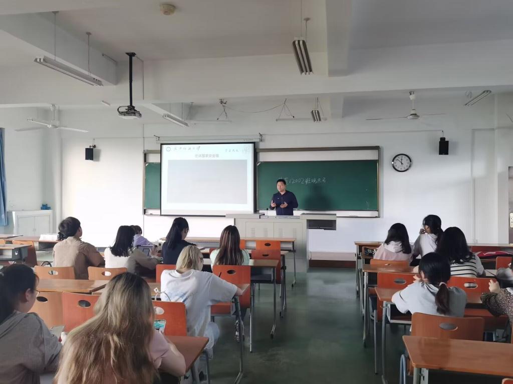 在国家安全方面,组织学生学习了总体国家安全观的“五大要素”——以人民安全为宗旨,以政治安全为根本,以经济安全为基础,以军事、科技、文化、社会安全为保障,以促进国际安全为依托;了解了《保密法》和什么是国家秘密,解释了哪些行为是恐怖活动,面对恐怖活动和邪教大学生可以怎么做,倡导大学生践行总体国家安全观,以新安全格局保障新发展格局。最后,还组织观看了国家安全宣传片《光芒》。