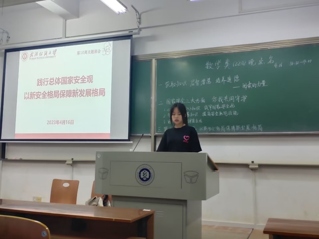 加强国家安全教育日宣传,4月16日,数理科学学院各年级于崇志楼开展第10周主题班会。本次会议由各班班长主持,年级辅导员及各班班主任悉数参与此次会议。