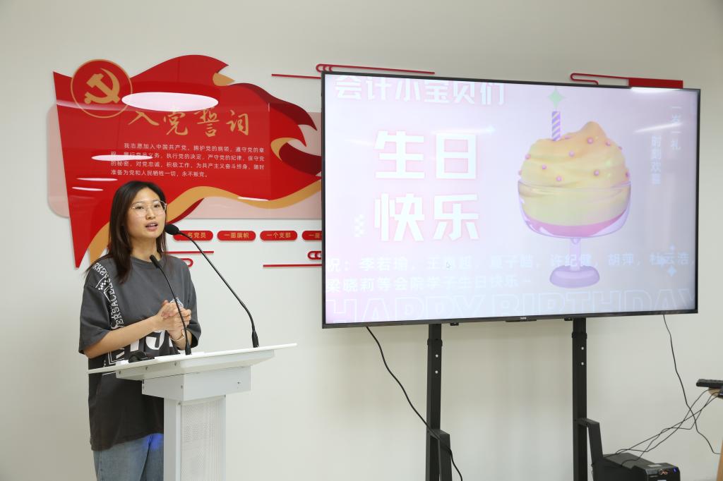 2021级各班班主任主持召开晚班会。班主任鼓励同学们积极参加“东方财富杯”大学生金融挑战赛、溢达全国创意大赛等专业比赛,主动向专任老师请教,及时解决问题,提升专业素养。此外,班主任动员同学们组队参加“讲好纺大故事”创意传播大赛,做“美好生活”的有心人,用文字和镜头记录下“美好纺大”的暖心故事、奋斗故事、成长故事。陈宇凡指导ACCA2102班开展“美好青春 益起阳光”4月集体生日会,现场气氛十分活跃。