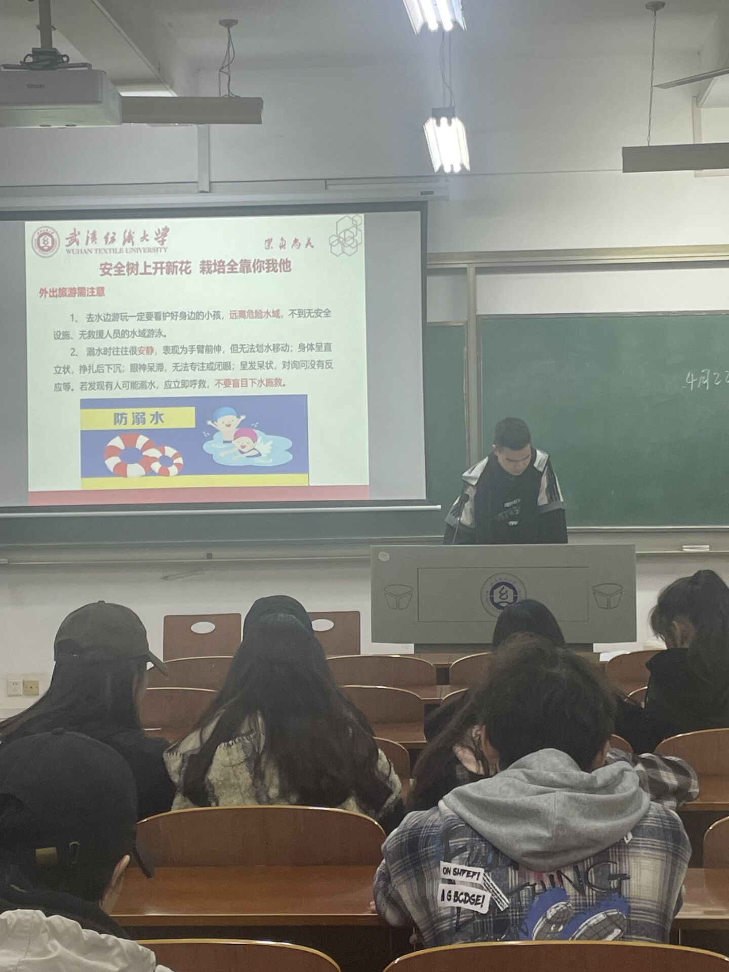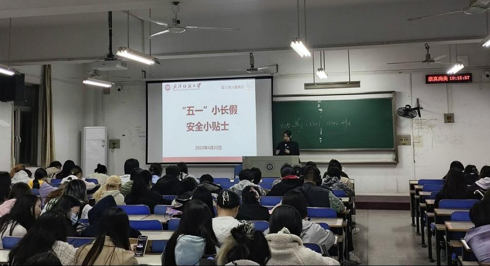 最后,班主任带领同学们学习五一”小长假安全小贴士,重温武汉纺织大学本科生考勤及请假管理办法,强调同学们要严格履行请假手续,外出注意安全。