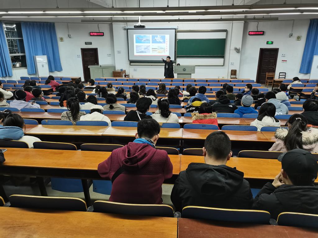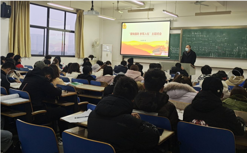 12月18日下午,外国语学院在崇志楼102教室组织征兵入伍宣传,学院辅导员聂啸天进行授课和政策宣讲。