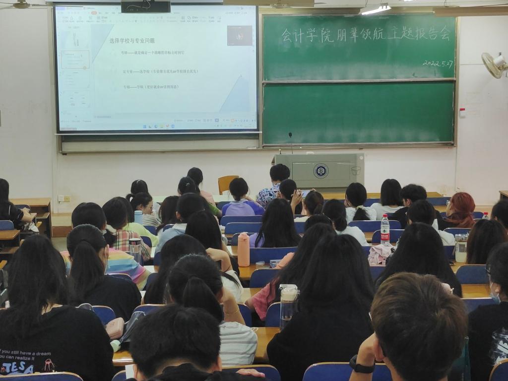 为了积极响应学校“抓考研、促学风”的工作要求,营造优良的学习氛围,激发学生学习的主动性,5月27日上午,会计学院在阳光校区3栋教学楼216教室开展了以“坚定信心·一研为定”为主题的朋辈领航分享会。会计11802班王依、工程造价11801班王婵婵、会计11801班李文珺担任本次分享会的主讲人,各年级意向考研的同学参加了此次活动。