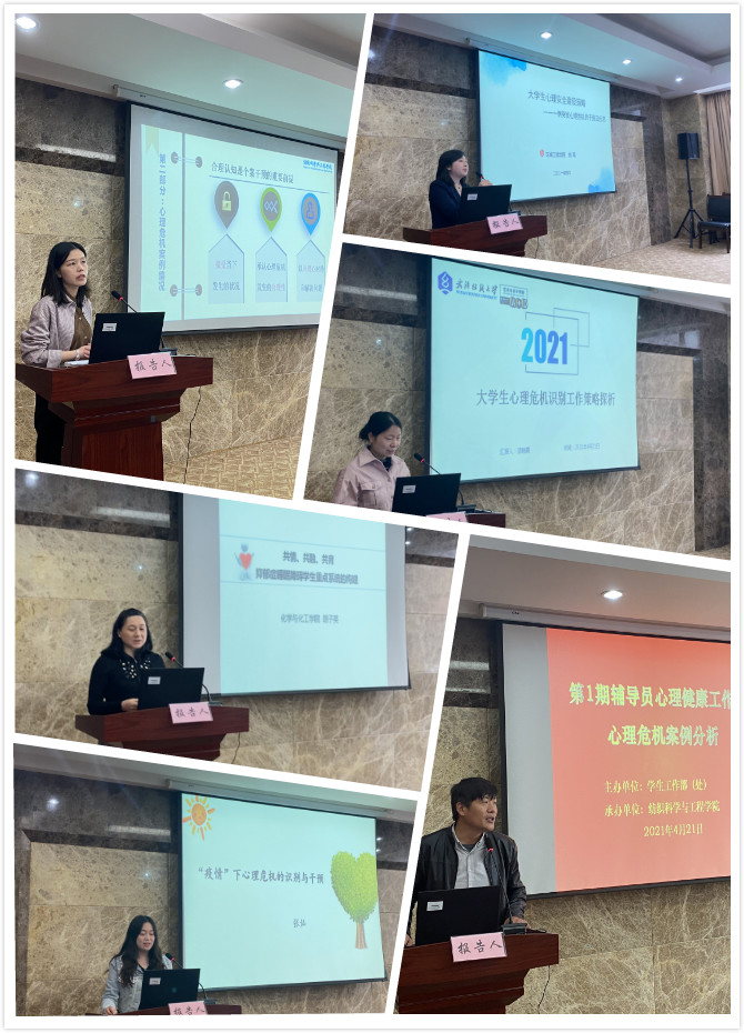 会议伊始,纺织学院党委张红鑫书记致辞,对老师们的到来表示欢迎,介绍了本院心理健康工作并强调了大学生心理健康教育的重要性,并预祝本次活动取得圆满成功。交流活动开始后,五位发言人依次分享了各自心理危机案例及干预处理情况。纺织学院严蔷薇老师以《对心理危机的合理认知与正确干预》为题详细讲解了心理问题的严重性与如何对待心理问题学生的步骤;环境学院姚瑶老师以《大学生心理安全建设策略分析——一例突发心理危机的干预及反思》为题,强调在心理干预工作中一定要站在学生的角度理解危机发生的背景,了解学生内心的真实需要,注重倾听,让学生体会到支持与爱;化工学院胡子英老师以《共情、共融、抑郁症学生重点系统的构建》为题,就身边案例向老师们描述了心理问题学生的特征,分享了自己在心理建设方面的帮扶及处理措施;电子电气学院张灿老师以《大学生心理危机的防范与干预》为题,详细就“心理危机的概念及发展、大学生心理危机的早期信号、心理创伤的分类、心理危机干预的三个阶段”等几个方面进行了深入浅出的解析,并提出了行之有效的心理危机事件干预和应对策略;艺术学院漆晚霞老师以《在细节中发现隐患与危机》为题,就案例对自己的工作进行反思,分享给各位老师经验与教训,提出了分类管理与识别工作能力提升的重要性,呼吁各位老师提升对同学的关注度。各位发言人详细分析了我校大学生中具有代表性的心理问题及形成原因,强调了心理干预机制的重要性,提出了行之有效的办法和思路。发言结束后,在座的各位老师进行了热烈的讨论交流,校心理健康中心副主任赵宝富老师解答了老师们的疑问,并对五位发言人的分享进行一一点评,他对各学院的心理健康工作提出了建议与意见,希望所有老师能对学生的关注转化到一句语言、一个动作和一个表情等。